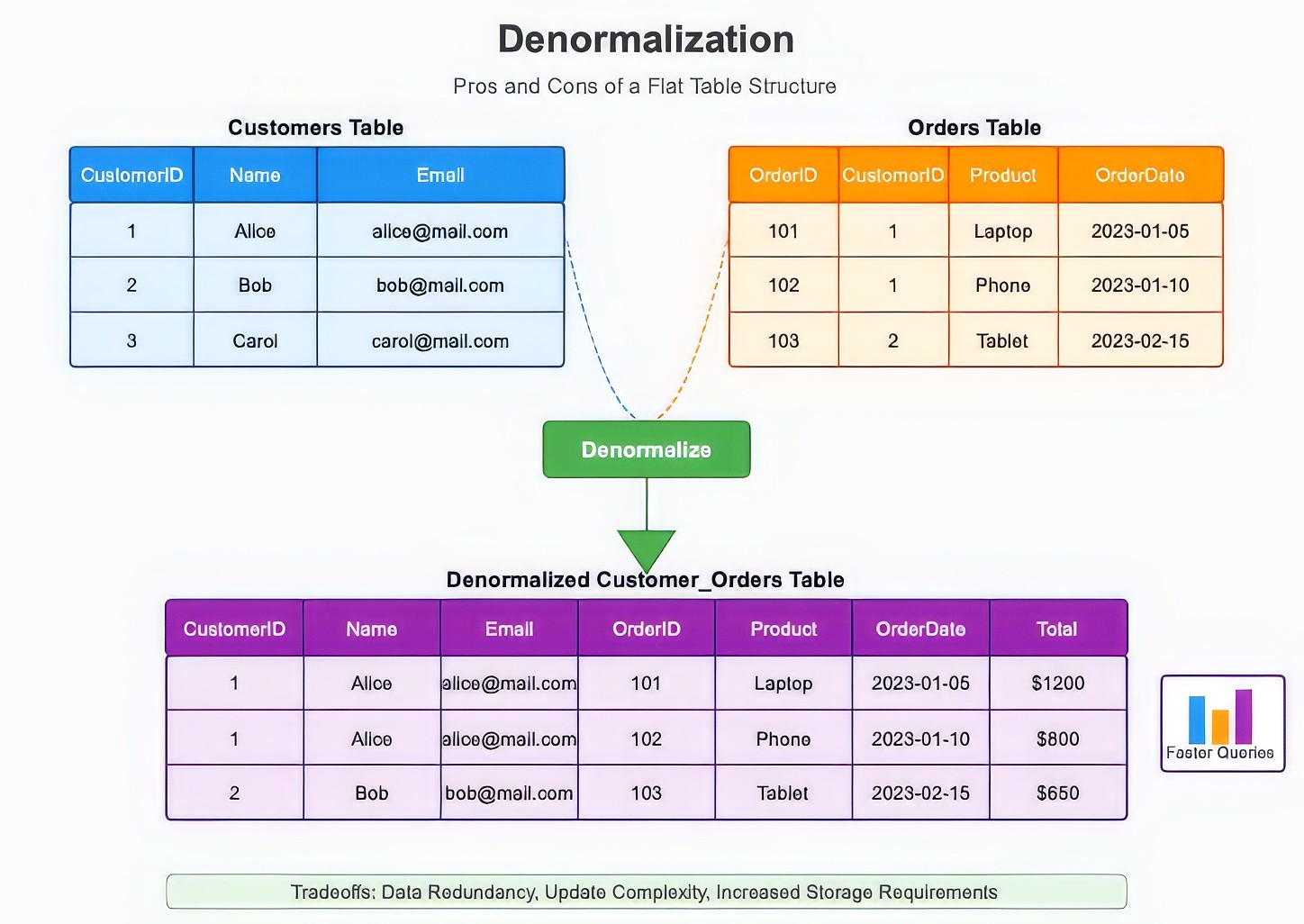 Complex Queries: If you need to update a single piece of information (like a customer’s email), you must update every row where that data appears, which can be computationally expensive.
