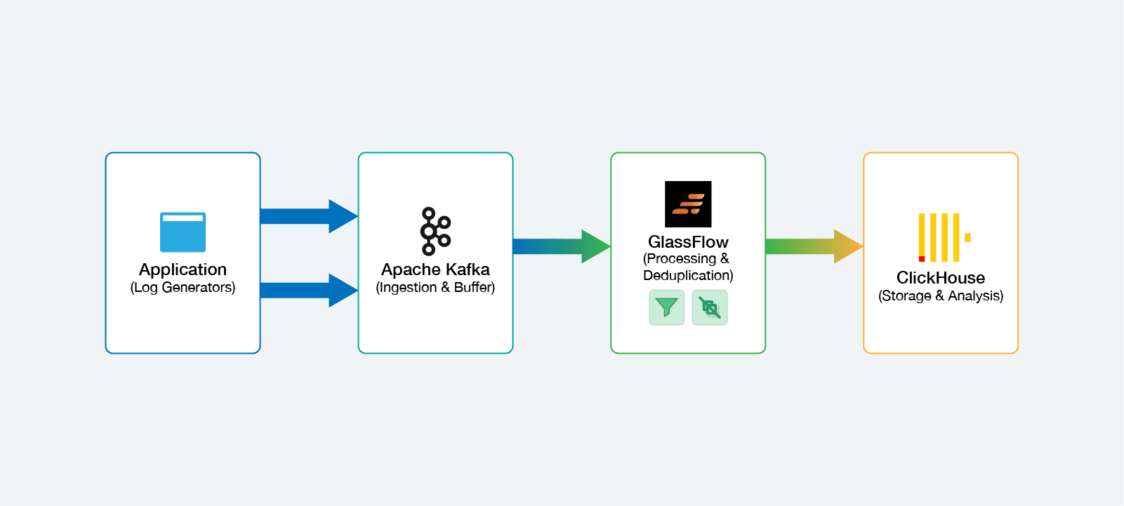 GlassFlow inserts itself upstream of ClickHouse to solve these problems before the data persists.